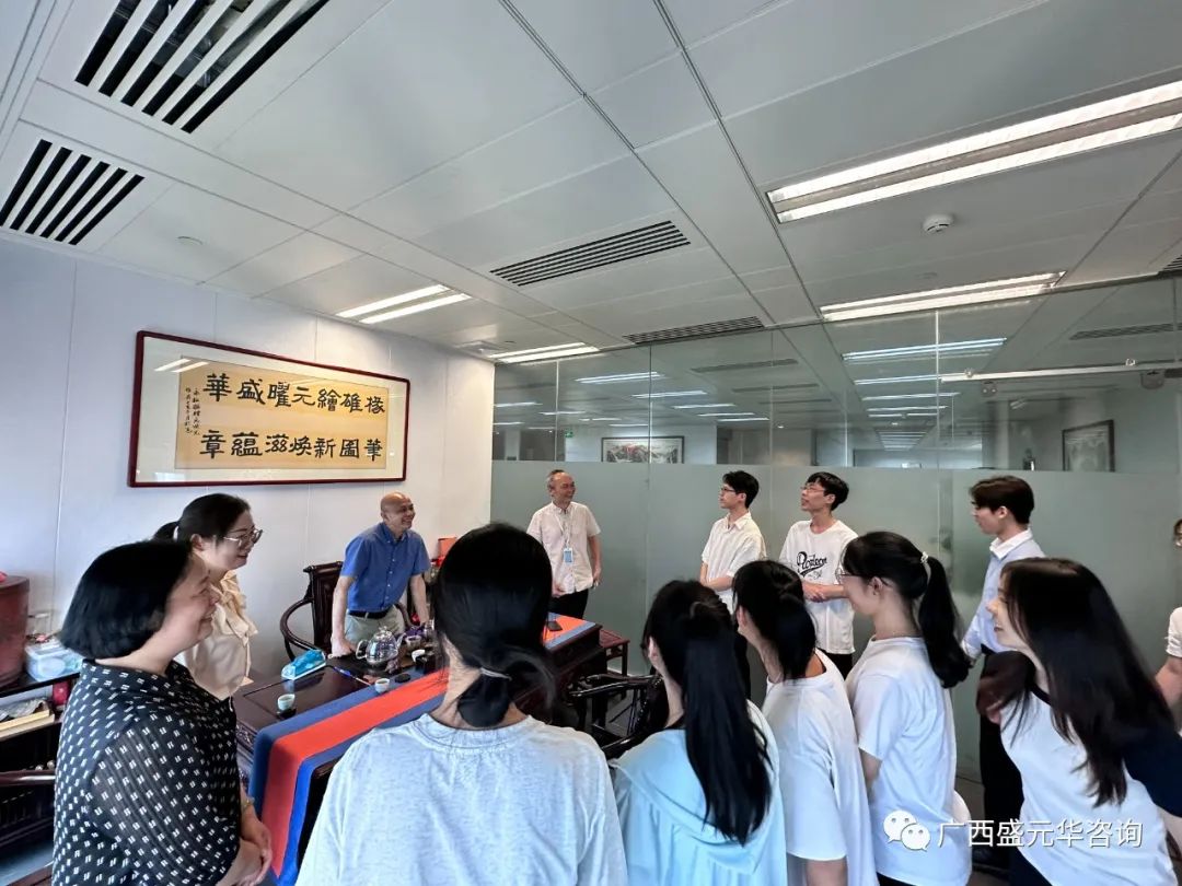 上午,由我集團(tuán)與建院管理學(xué)院、賀州學(xué)院三方辦學(xué)的工程造價專業(yè)2002班的學(xué)生們在建院管理學(xué)院羅輝副院長、教工第二黨支部周慧玲教授、王心月及封炫妃老師的帶領(lǐng)下到我集團(tuán)總部觀摩、交流。集團(tuán)副總經(jīng)理黃藝熱情迎接了到訪的各位師生,并帶師生們參觀了集團(tuán)總部的辦公場所、觀摩員工在各崗位的工作情況。集團(tuán)董事長方元煥在辦公室接待了各位師生們,并代表集團(tuán)上下對師生們的到訪、觀摩表示熱烈歡迎。